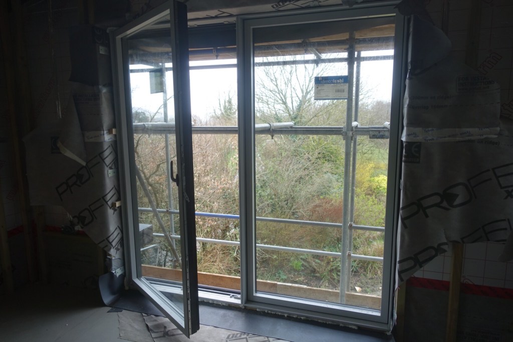 Some people have asked me about the difference between triple and double glazing and whether triple glazing is worth the additional cost. For our objective of trying to achieve Passive House standards in terms of insulation and performance triple glazing was essential. Particularly given that we have put in some fairly large windows throughout the house. A good triple glazed window can give you energy efficiencies of between 0.8 to 0.6 compared to 2.8 for double glazing – what this means in reality is a 2 degrees difference near to windows – or 18 degrees for triple glazed compared to 16 degrees for double glazed.