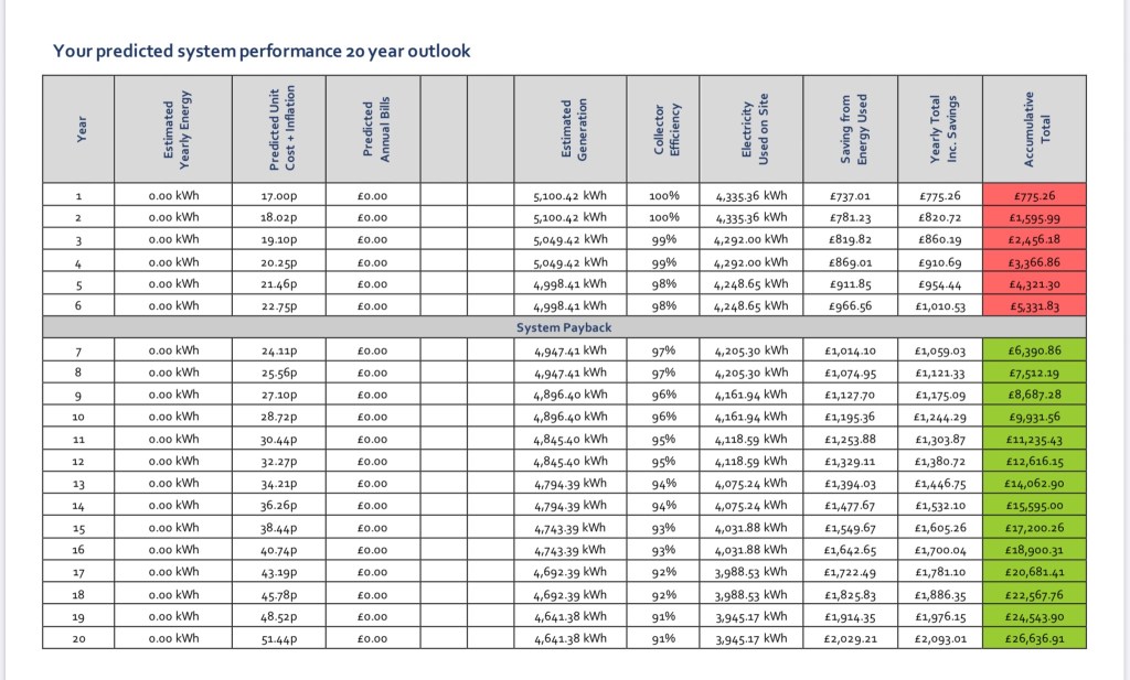The tables below give an idea of the potential return on our investment. In this I would say that Solar PV is not a quick return investment but it does mean that we are reducing our impact on the environment by using cleaner energy and it enables us to be more self-sufficient which in these uncertain times is no bad thing. It is far too early to assess how the entire system will perform but I look forward to monitoring this over the course of the next year and providing updates as we finally move into Ubuntu to live.